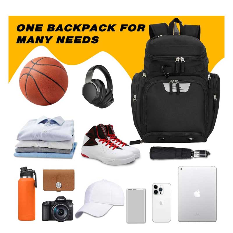 Dedicated Ball & Shoe Storage: Features a front Ball Compartment (fits basketball/soccer/volleyball) and a separated, Vented Shoe Compartment to keep the main bag clean.
