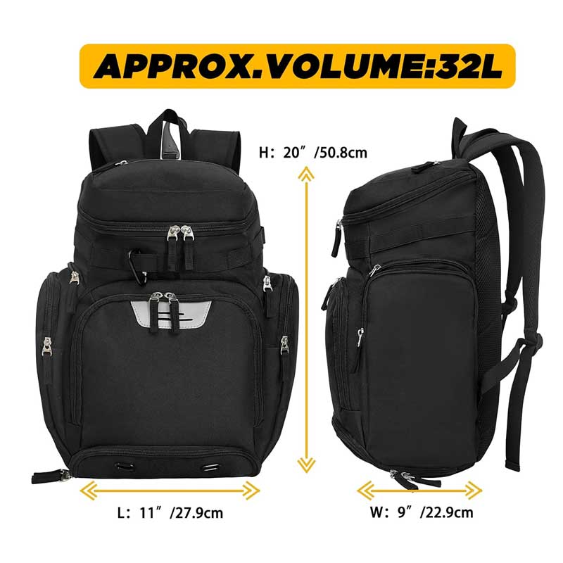 32L Large Capacity: Measures 11x 20x 9 inches with a 32 liters capacity, easily accommodating all necessary sports equipment for basketball, soccer, or general gym use.