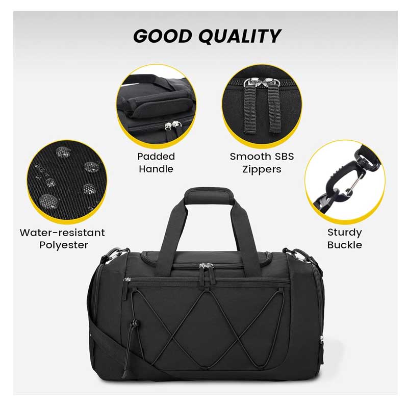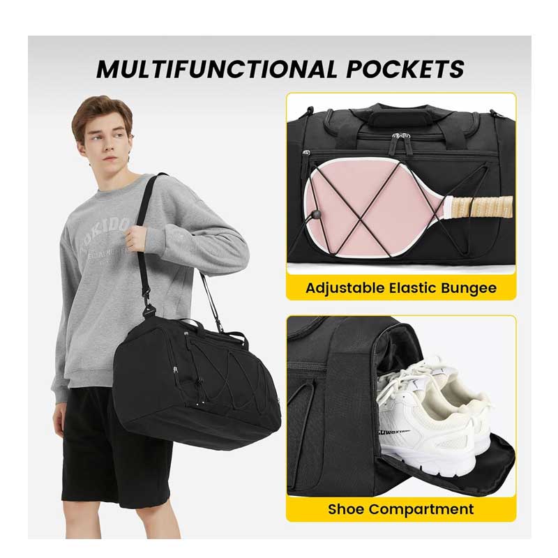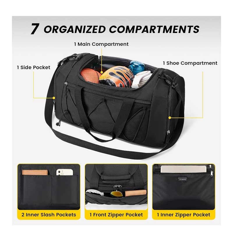 Quality & Innovation: We prioritize material excellence, utilizing 600D water-resistant polyester and robust SBS zippers. Key features include 7 purposeful pockets, highlighted by the separate shoe compartment (solving hygiene concerns) and the distinctive adjustable drawstring for yoga mats or jackets, which adds a trendy touch. Our reinforced cross stitching and padded handles guarantee longevity and user comfort. We invite buyers seeking durable, stylish, and feature-rich duffel bags to leverage our OEM/ODM capabilities for competitive, custom-branded products.