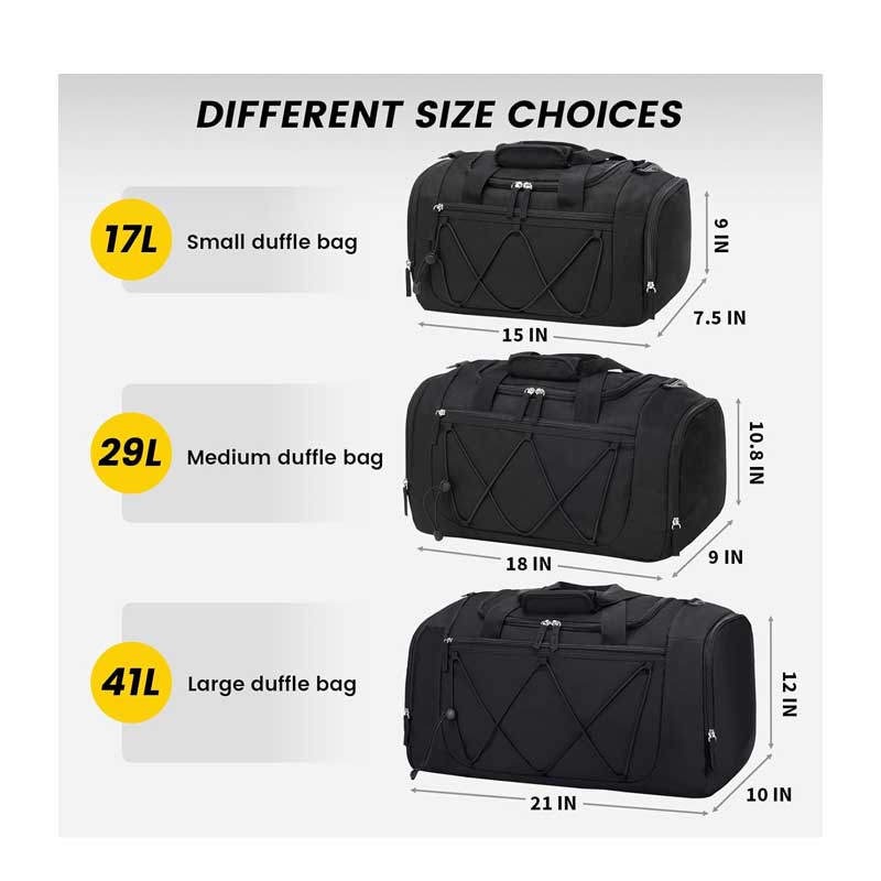 As a specialized wholesale gym bagfactory, we present this 41L athletic bag, designed to meet the high demands of the sports and travel retail markets. Sized at 21”L and weighing a mere 1.2lb, this sports duffel bag offers substantial capacity for weekenders, gym sessions, or competitive events. It is a versatile choice, adaptable as an overnight, workout, or carry-on bag, appealing to a wide customer base.