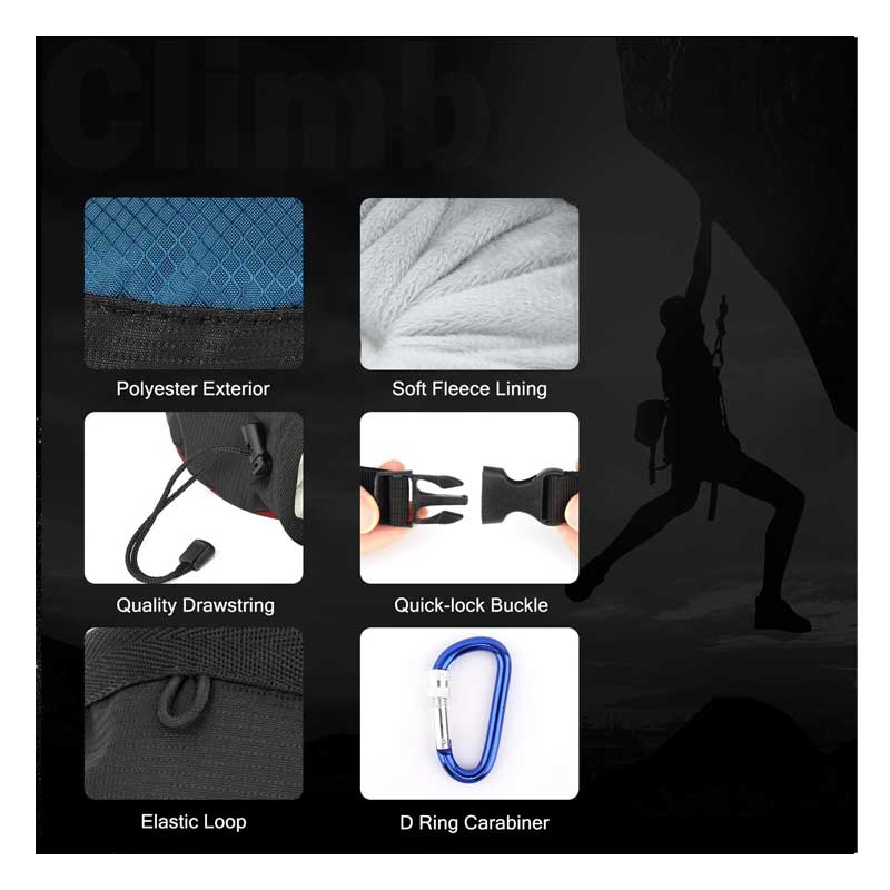 Premium Dual-Layer Material: Made with a Dacron exterior for waterproof and abrasive resistance, plus a soft corduroy interior for comfortable chalk retrieval and minimal powder leakage.