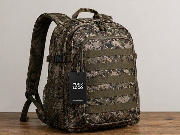 We support polyester, nylon, ripstop fabric, canvas, coated fabric, camo fabric, and water-repellent finishes. Buyers can choose materials based on durability, abrasion resistance, fabric noise, weight, texture, price level, and target market positioning.