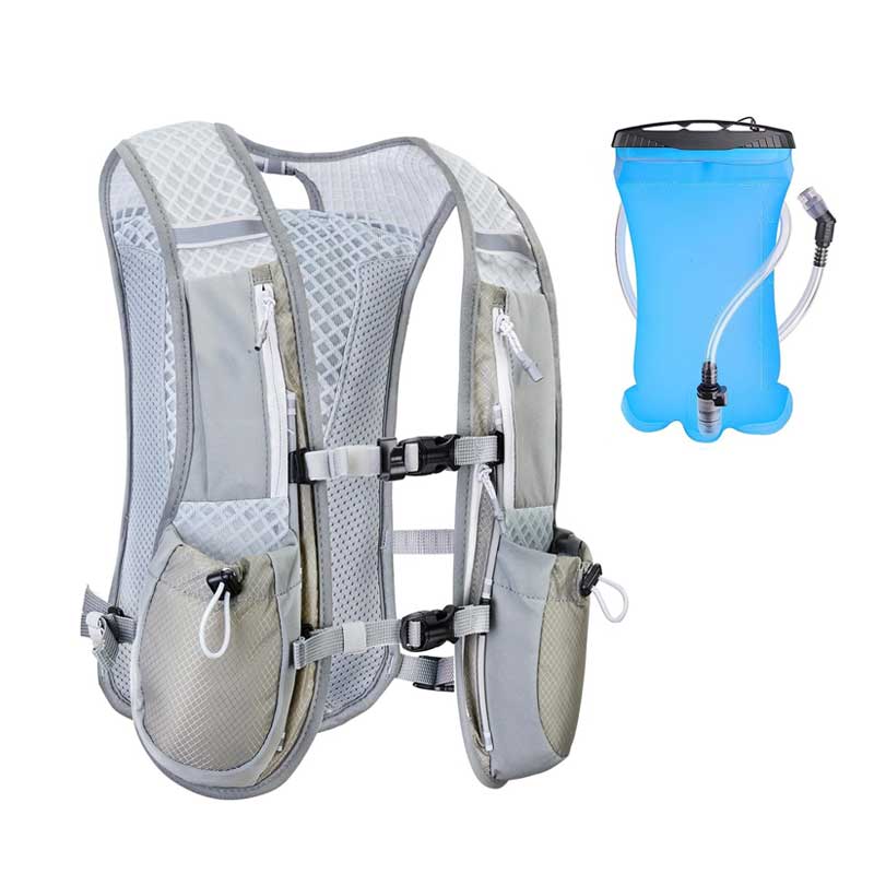 Source the essential gear for marathon runners and trail athletes. This custom hydration pack is engineered for peak performance, weighing only 230g thanks to its construction of breathable fabric and high-density mesh, which provides optimal fit and super breathability. The adjustable chest strap system is a key feature, allowing users to quickly dial in the fit (suitable for 80-120cm chests) to minimize movement and reduce jumping force while running. Hydration is seamless: a dedicated compartment is compatible with a 1.5L water bladder, complemented by 2 front pockets for quick soft bottle access. Despite its light profile, the vest offers 5L large storage space spread across 7 pockets, including a secure zippered phone pocket (under 6 inches). Crucially, reflective stripes on the front and back ensure maximum safety for running in dark conditions. Partner with us for bulk orders of this technically superior vest, customizable in color and size.