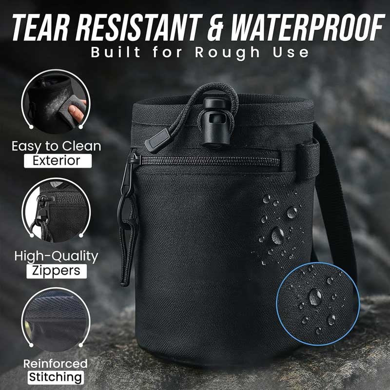 • Ultimate Durability & Waterproof: Constructed from rip-stop, water-resistant fabric with reinforced stitching and a stiffened rim to prevent fraying, tearing, and maintain an open shape for easy chalking.
