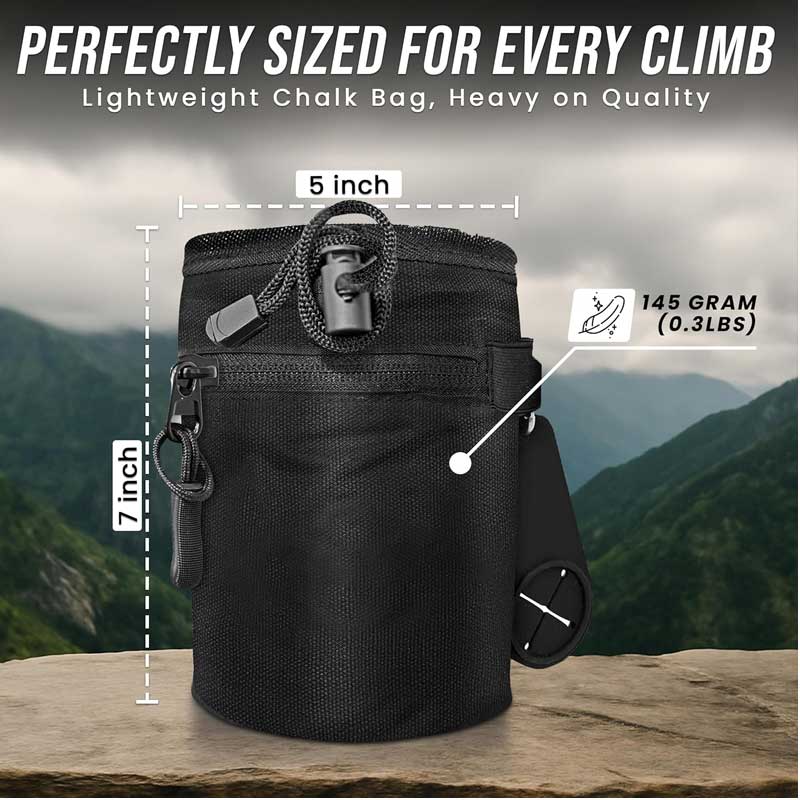 • Hands-Friendly Capacity: Designed with a deep, wide opening and sufficient capacity to fit most hand types and hold enough chalk for long sessions without being bulky.